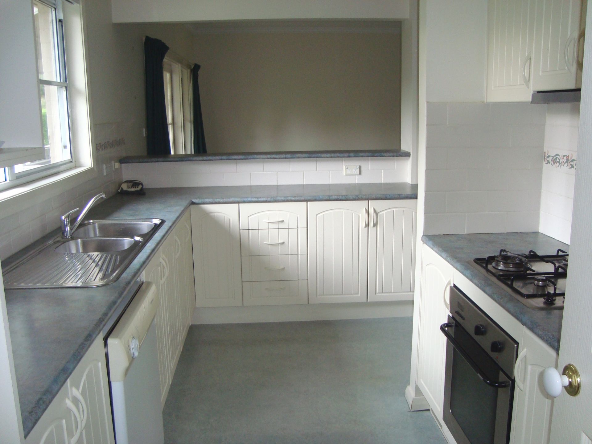 - Kitchen with gas cook top, electric oven and dishwasher